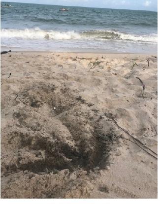 Óleo de embarcação despejado na areia à beira-mar