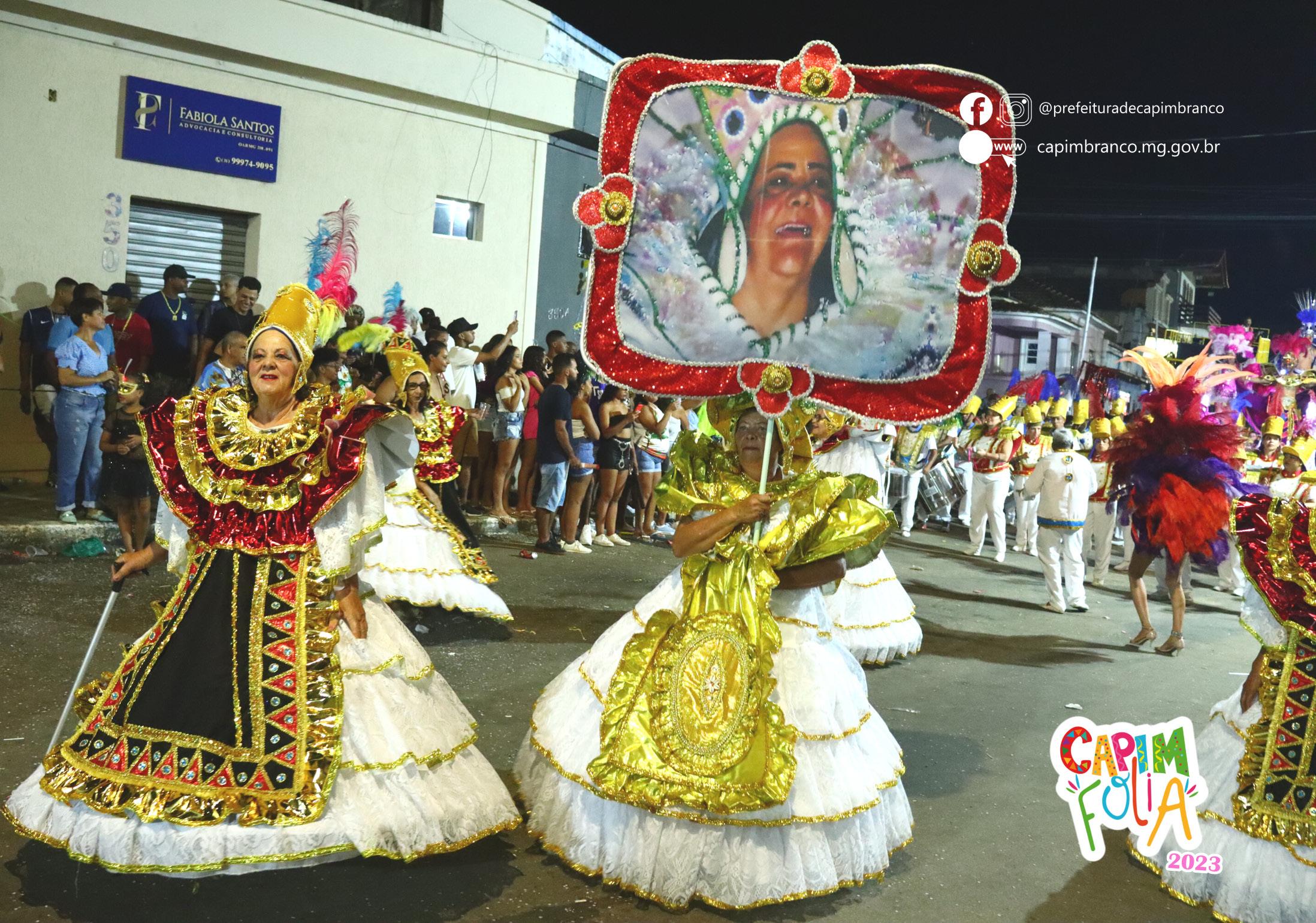 O município de Capim Branco, com cerca de 10 mil habitantes, vivenciou 4 dias do mais tradicional Carnaval – Capim Folia 2023, de sábado a terça-feira, contando com desfiles, matinês, blocos e shows musicais. A escola ESUCAB, desfilou e encantou todos os que estiveram presentes na Avenida principal no Centro da cidade, com os seus 150 membros com 80% do material recuperado do RJ.