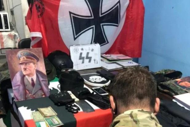 nivetes e uma arma de fogo falsa. Segundo o delegado Marco Antônio de Souza, “não tinha como [os pais] não estarem sabendo do que acontecia naquela casa, dado o farto material que foi apreendido”, explicou, em entrevista ao G1. Uma bandeira apreendida teria sido um presente do pai ao filho, conforme o diretor do Grupamento de Operações Especiais da Coordenadoria de Recursos Especiais da Polícia Civil. “Entrevistando o pessoal na casa e com as informações que a gente já tinha acerca da investigação, a gente conseguiu descobrir que a bandeira que faz apologia ao nazismo, inclusive,