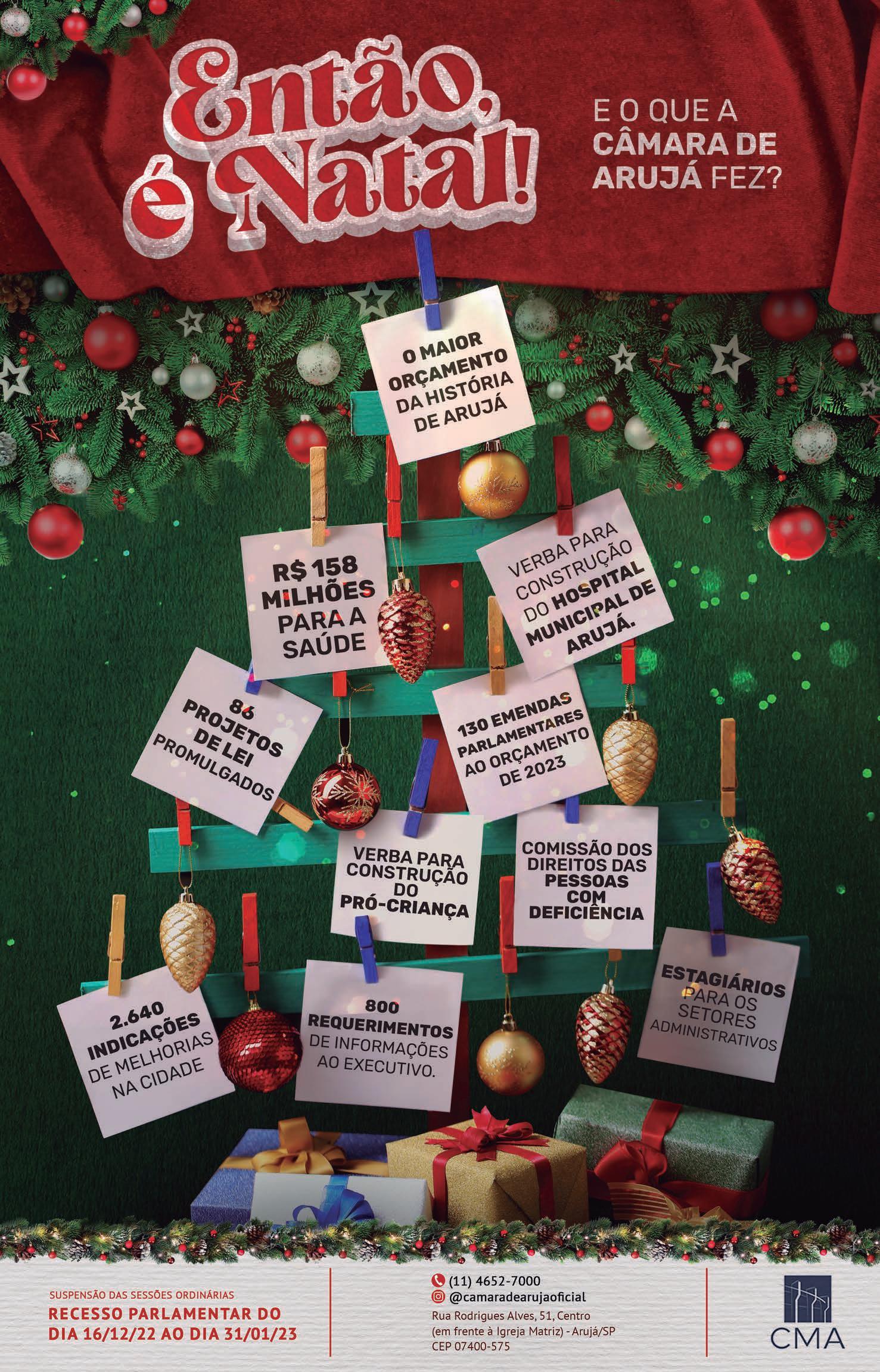 Abelzinho ainda destacou a boa relação com o Poder Executivo em prol de melhorias para a cidade, rea rmando o compromisso da Câmara com a população arujaense, especialmente a parcela mais necessitada.