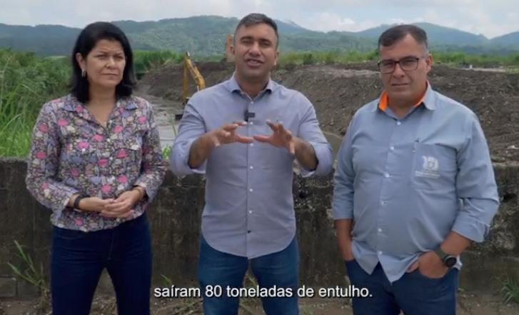 irregulares. Nesta semana, ele esteve no Córrego dos Canudos, na Vila Estação, para acompanhar os trabalhos das equipes de manutenção e infraestrutura na limpeza do córrego. Só neste ponto foram retiradas 80 toneladas de lixo, que, se somados ao que foi retirado do Oropó e Jundiapeba, são mais de 250 toneladas.