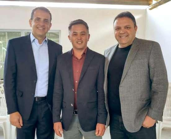 PARCERIA Toshi Omura agradece aos deputados Marco Bertaiolli e Marcos Damasio