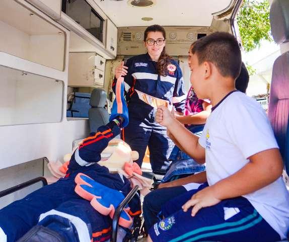 O Consórcio levou uma ambulância do Samu para a atividade visando demonstrar às crianças a importância do serviço rem algum curso que seja para as escolas, que seria a Lei Lucas, que a gente faz para os professores, aonde a gente ensina primeiros socorros para eles; e quando é direcionada aos alunos, é o Samuzinho.”