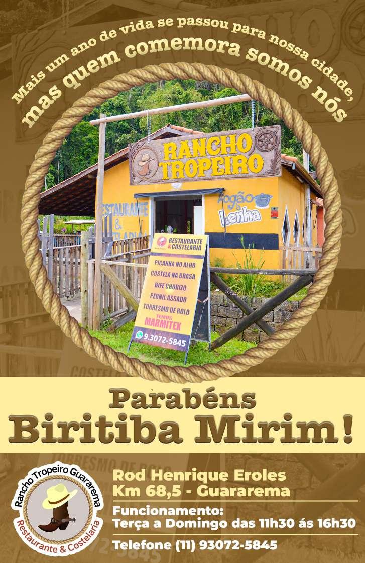 Biritiba Mirim está realizando diversos eventos em comemoração aos 59 anos de sua emancipação político-administrativa. Mas vale ressaltar que a cidade surgiu em 1873, no dia 5 de maio, quando o senhor Benedito Antônio do Espírito Santo (Benedito Pedro) doou um terreno de 36,3 m²²²²²²il metros quadrados, onde foi construída a Capela de São Benedito. Muito tempo depois, a cidade se tornou um município, Biritiba Mirim, cujo nome é originário da língua tupi-guarani e significa “pequeno lugar onde nascem muitos biris”. Curiosidade: Biri é uma espécie de flor a qual nasce em grande quantidade na região do Vale do Tietê, em áreas alagadas. As festividades referentes aos 59 anos da emancipação começaram já na segunda-fei-