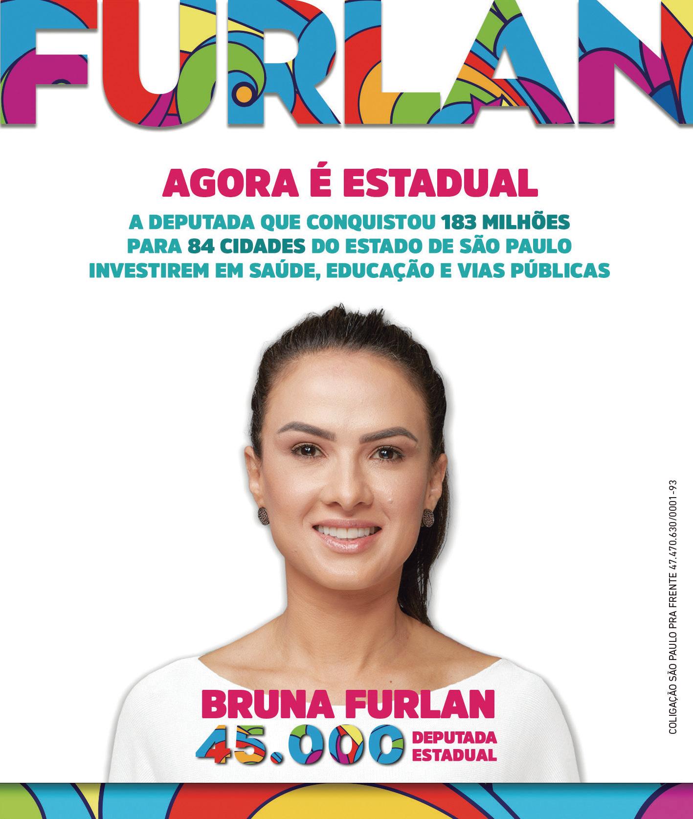 rueri, também com três can didaturas federais: Mari Ta velli (Solidariedade), Professora Kátia (PT), An drea Reis (Avante). Além disso, o município tem três nomes na disputa estadual: Bruna Furlan (PSDB), Deja