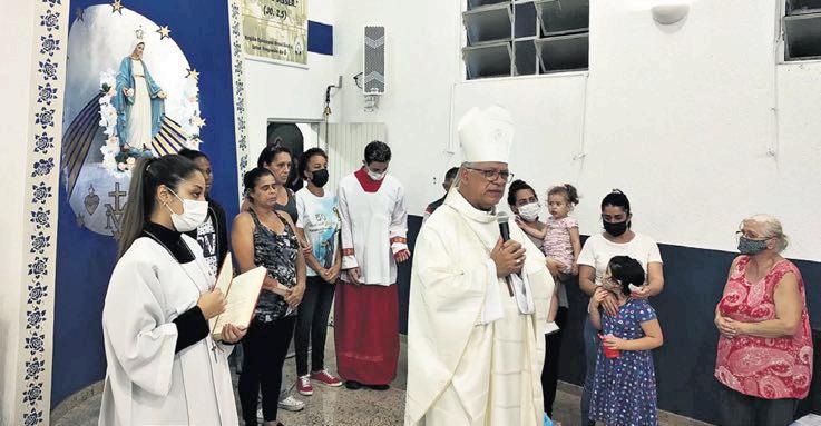 “Hoje, nós olhamos para Nos sa Senhora, que é padroeira desta Paróquia, com o título bonito de Nossa Senhora das Graças. Que graças são essas? Nossa Senhora que nos trouxe o autor das graças, Jesus Cristo, Filho de Deus, que se tornou por ela, lho de Maria e Fi lho do Homem, ou seja, da huma nidade”, conclui o Arcebispo.