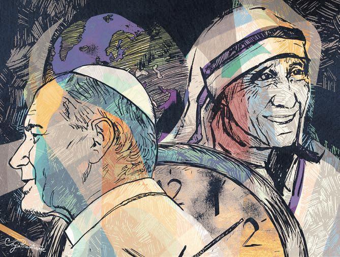 Da Índia ao mundo, considerada a maior missionária do século XX, em 20 anos o trabalho missionário de Madre Teresa estava espalhado em diversos países, como Albânia, Rús sia, Cuba, Canadá, Palestina, Bangla desh, Austrália, Sri Lanka, Itália, sem contar ainda com os Estados Unidos. Ela abriu casas de caridade nos países comunistas como a antiga União So viética e China. São João Paulo II teve papel importante para o m do comu nismo na Polônia e em outros países da Europa e, nos anos 1980 e 1990, in uenciou a restauração da democra cia e liberdades religiosas. A primeira encíclica, Redemptor hominis, explica a ligação entre a redenção por Cristo e a dignidade humana.