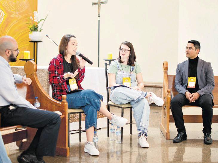 Fernando Geronazzo 30 de novembro de 2022 EDIÇÃO 03 No sábado, 26, a Pastoral da Co municação (Pascom) da Arquidiocese de São Paulo realizou mais uma edição do evento Pascom em Ação, voltado para a formação de agentes de pasto ral sobre a evangelização através dos meios e processos de comunicação. Após dois anos sem ser realizado presencialmente, devido às restrições da pandemia, o Pascom em Ação des te ano aconteceu na Paróquia Nossa Senhora Mãe de Deus, na Freguesia do Ó, e foi organizado pela Pascom da Região Episcopal Ipiranga. Este ano, o evento teve como tema “Escutar com o ouvido do coração”, inspirado na mensagem do Papa Francisco para o Dia Mundial das Co co em nossas vidas e na vida pastoral de nossa Igreja local!”, a rmou o Padre Luiz Cláudio Braga, Assistente ecle siástico da Pascom Arquidiocesana. Neste caderno especial, O SÃO PAULO apresenta os principais desta ques do Pascom em Ação 2022. O QUE É PASCOM? A expressão “Pastoral da Comu nicação” nasce da conjunção de duas realidades que interagem reciproca mente: comunicação e pastoral. A pa lavra “pastoral” tem sua raiz no verbo “apascentar”, “pastorear”, e no termo “pastor”. A Pascom, como é popularmente conhecida no Brasil, surgiu em respos ta à urgente necessidade da Igreja em utilizar e evangelizar os meios de co municação social. Muitos especialistas consideram sua pedra fundamental a