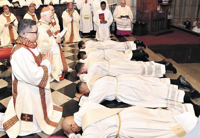 irão agir em nome da Igreja, não em função de si próprios. Somos ‘emprestados’ à pessoa de Jesus Cristo, que age por meio de seus minis tros”, afirmou o Arcebispo, acrescentando que a vocação sacerdotal é uma grande graça con cedida pela vontade e misericórdia de Deus.