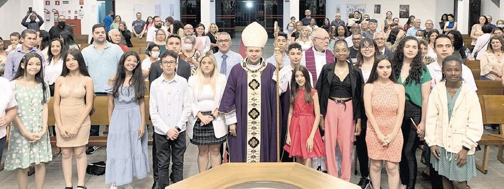 No domingo, 4, no Santuário Arquidiocesano Nossa Senhora Aparecida, no Ipiranga, Dom Odilo Pedro Scherer ministrou o sacramento da Crisma a 22 adultos e 18 adolescen tes, durante missa por ele presidida e concelebrada pelo Padre Zacarias José de Carvalho Paiva, Pároco e Reitor. Na homilia, o Arcebispo Metropolitano chamou a atenção para a beleza das verdades escatológicas contidas na leitura do profeta Isaías, e orientou que to dos devem estar preparados para o encontro com Deus e buscar a observância dos Man damentos no cotidiano, sem a procura de atalhos, com a ajuda constante do Espírito San to.