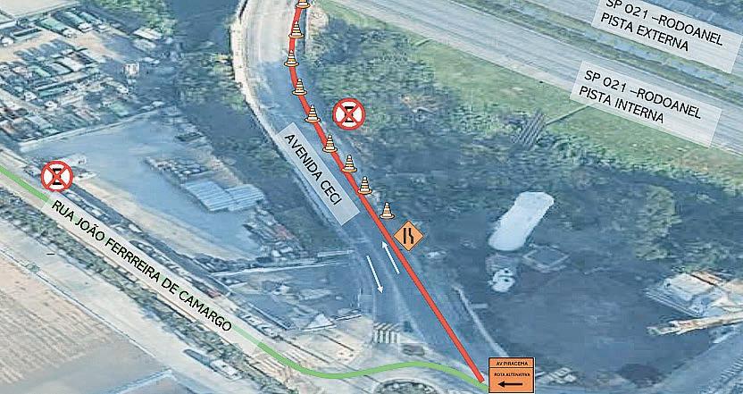 incluindo rota alternativa para quem segue no sentido Tamboré, pela avenida João Ferreira de Camargo.