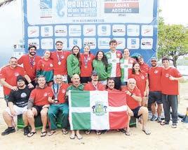 É VICE EM CAMPEONATO DE ÁGUAS ABERTAS A equipe de natação que representa Osasco, composta por 45 nadadores, conquistou a 2ª colocação ao disputar o Campeonato Paulista de Águas Abertas, em São Sebastião (SP), nas categorias petiz, infantil, juvenil e júnior (todas 1 e 2), além da sênior e da master (A a H). O time obteve ao todo 34 medalhas (17 de ouro, 10 de prata e 7 de bronze). Entre os que subiram ao pódio, a Secretaria de Esportes, Recreação e Lazer mencionou as campeãs Laura Lorenzo (2,5 km/juvenil), Letícia Godoy (500 m/infantil 2) e Luana Gonçalves (5 km, sênior); os vicecampeões Júlia Andrade (5 km/juvenil) e Pietro Quirico (500 m/infantil 2); além dos medalhistas de bronze Alessandro Krausz (2,5 km/júnior),