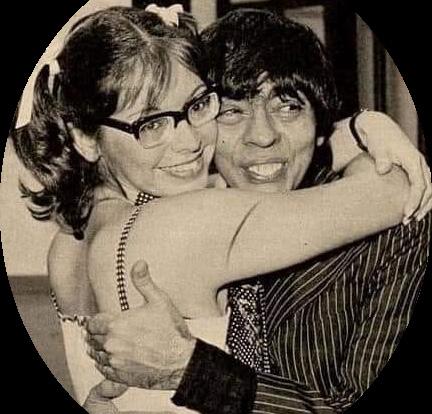 UM REGISTRO DIFERENTE AQUI - Na foto Bozó e a estagiária Maria Angélica que era apaixonada por ele (1978). O personagem de Chico Anysio era um dos mais populares de seu programa. A estagiária era interpretada por Alcione Mazzeo, esposa de Chico na época. Nas revistas especializadas e colunas que escreviam sobre lazer e novelas, leu-se muito sobre o abraço mais que carinhoso do casal de personagens. O fato de serem marido e mulher ajudou na autenticidade da cena. Tá explicado! Chico já mudou de plano, mas Alcione Mazzeo, que nasceu no 27 de maio de 1951, ainda comemora 72 anos de vida completados mês passado. Parabéns a ela e saudade do Chico!