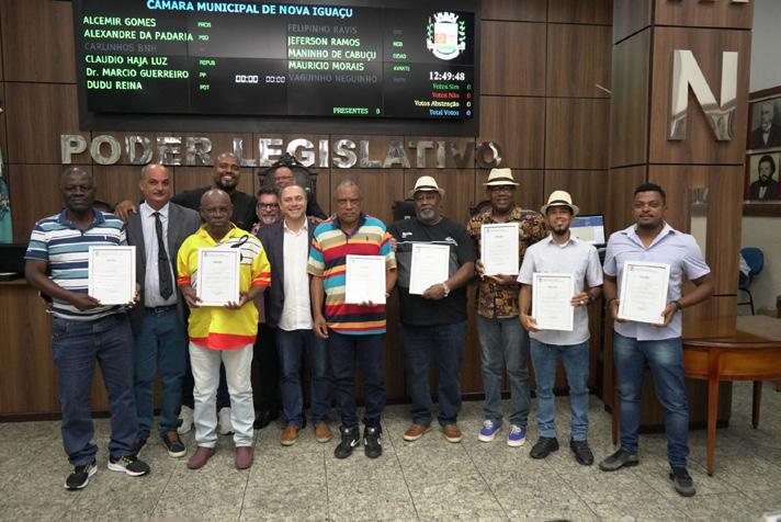 Os vereadores iguaçuanos aprovaram mensagem do Executivo, durante a ses são plenária desta manhã (06.12), que visa aperfeiçoar a estrutura funcional do município, garantindo que os conselhos estejam junto às pastas com as quais pos suam maior afinidade. “Esta medida visa adequar as atribuições das Secretarias com a atuação dos respectivos conselhos, o que, na prática, significa a desburocra tização da máquina pública”, afirmou o presidente da Câmara Municipal, Eduar do Reina Gomes de Oliveira, Dudu Rei na. O projeto do prefeito, nº 90.738-2022, foi aprovado por unanimidade. O secretário municipal de Serviços Públicos, Douglas Mucciolo, esteve presente à sessão e esclareceu dúvidas dos vereadores em relação às indicações que a Casa tem feito sobre ações de manutenção, melhorias e infraestrutura na cidade. Mucciolo afirmou que todas estão sendo atendidas, com a busca de um atendi mento de excelência para a população. Muitas personalidades, de diversos campos de atuação, foram homenageadas com Mo ções de Congratulações e Aplausos: agentes da segurança pública, educadores, agentes de saúde, empresários e sambistas. Compo sitores das Escolas de Samba de Nova Iguaçu foram reconhecidos pelo presidente Dudu Reina, em comemoração pelo Dia do Samba, que aconteceu no dia 2 de dezembro.