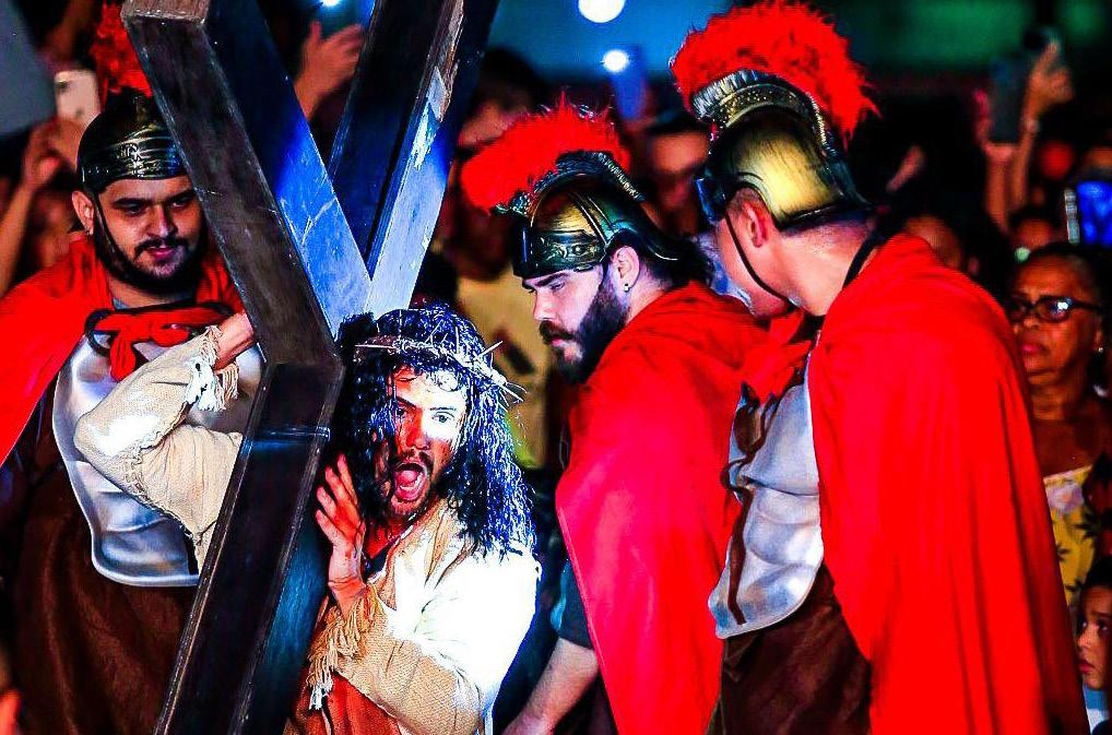 Atrajetória e o sofrimento de Jesus Cristo ganharam vida nas ruas com o poder do Teatro. Esta foi uma das definições marcantes do repórter Fábio Júdice, na matéria-chamada do RJTV, da Rede Globo, sobre a peça sacra ‘Paixão de Cristo’ encenada dia 7 deste abril (sexta-feira Santa) pela Cia Adorart de Teatro na praça de Heliópolis, em Belford Eoxo. Jefferson Alencar, ator intérprete do Cristo Jesus e diretor geral do espetáculo, conta que cerca de 30 atores/atrizes e mais 20 pessoas na equipe de produção integraram a estrutura do Sacro que retornou à cena´presencial depois de três anos ausente. “Foi tudo muito lindo e emocionante, após dois meses de ensaios”, disse Jefferson à Resenha Cultural & Cia do JORNAL POVO.