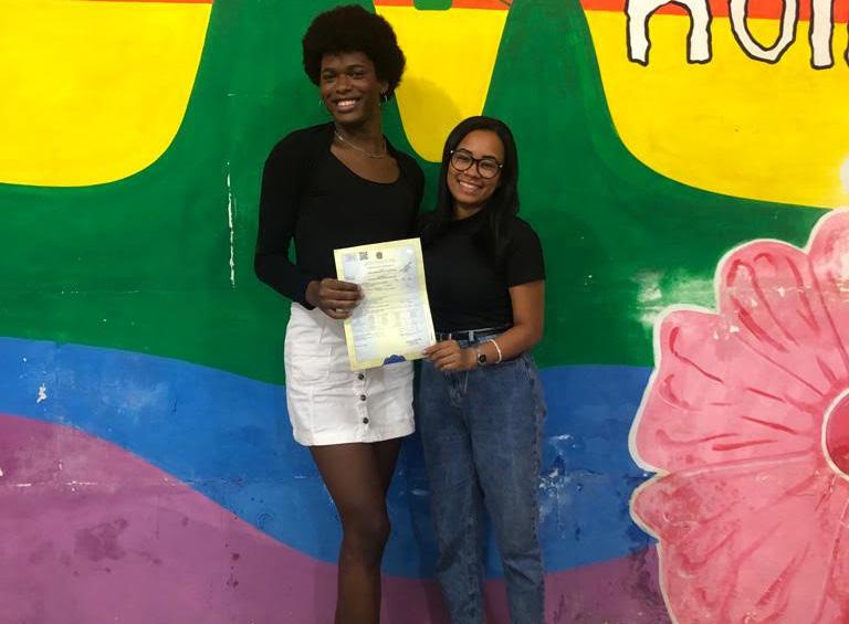 Michelly Coelho do NAD - Núcleo de Atendimento Descentralizado LGBTQI de Queimados com mais uma pessoa retificada na foto r diz o quanto é feliz por poder realizar o sonho de muitas pessoas que tem esse desejo.