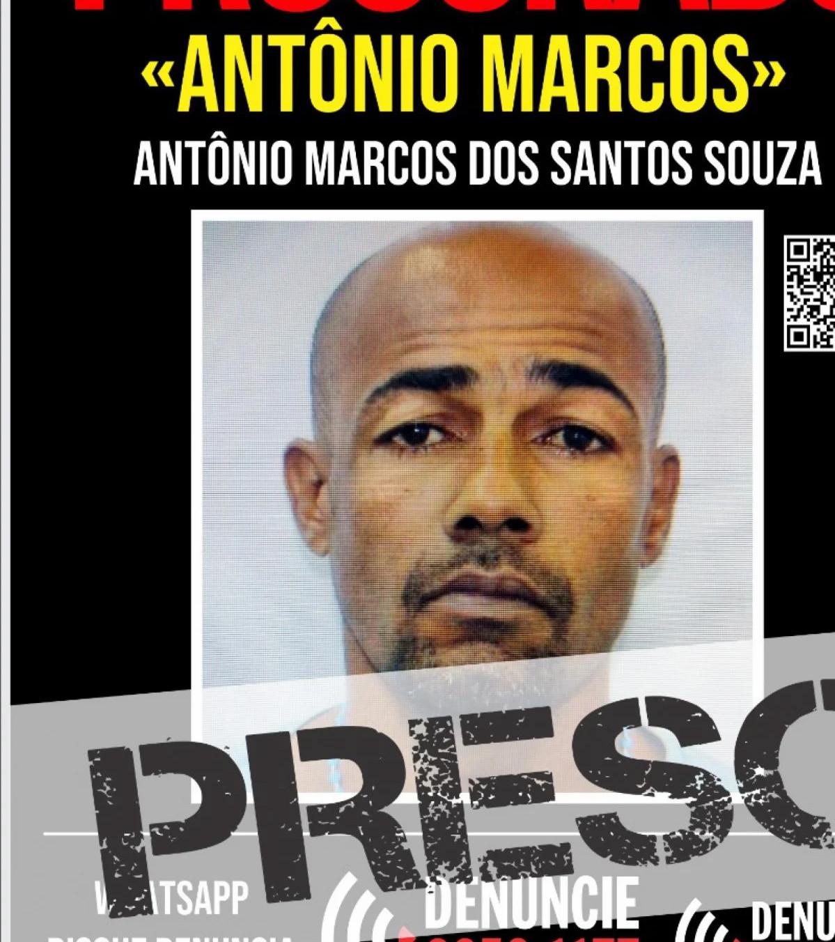 A Polícia Civil prendeu um foragido da Justiça, identificado como Antônio Marcos dos Santos Souza, na tarde desta terça-feira (20), na Rua Atilio Cirauco, em Santa Cruz, Zona Oeste do Rio. Ele estava escondido com ajuda de sua atual companheira e foi localizado com informações repassadas pelo Disque Denúncia.