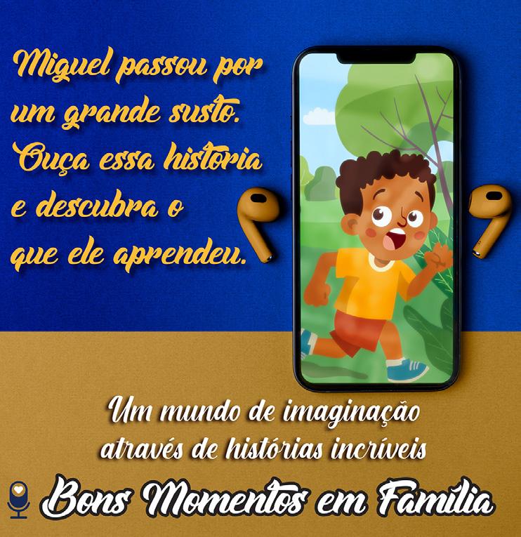 Completam a lista, “O Pequeno Herói da Holanda”, “Uma Nova Aventura”, “Beleza Negra”, “Todos contra o Estômago”, “Seja Verdadeiro”, “Por Favor”, “A Voz da Lagarta”, “A Menina Diferente” e “Receita de um Dia Feliz”. Cada conto tem em média 10 minutos e a ilustração de capa do podcast é de André Flauzino. O projeto é inclusivo por ser em formato de podcast, atendendo também às necessidades da Pessoa com Deficiência Visual. Para ouvir e mais informações sobre as sinopses dos contos infantis: link na bio spoti.fi/3Ye1bhO do instagram @bonsmomentosemfamilia Ao acessar de graça o Spotify, procura por “Bons Momentos em Família” – Coleção 2022.