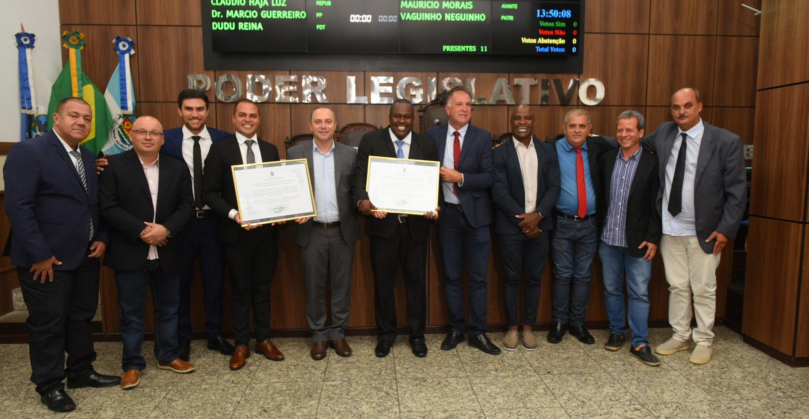 tarei sempre por aqui. Dudu, você ainda terá que me aturar muito (risos)”, disse. BNH, eleito deputado estadual com 42.811 votos, também fez questão de falar de seu suplente, Roberto Maciel Rebouças, Dr. Robertinho: “Siga firme com seus propósitos e faça da política um meio de fazer o bem e ajudar o próximo”. No final da sessão, os deputados foram presenteados com diplomas de reconhecimento e homenagem. A assessora do vereador Claudio Haja Luz, Thaissa Firmino, cantou o louvor da cantora gospel Jamily, ‘Conquistando o impossível”.