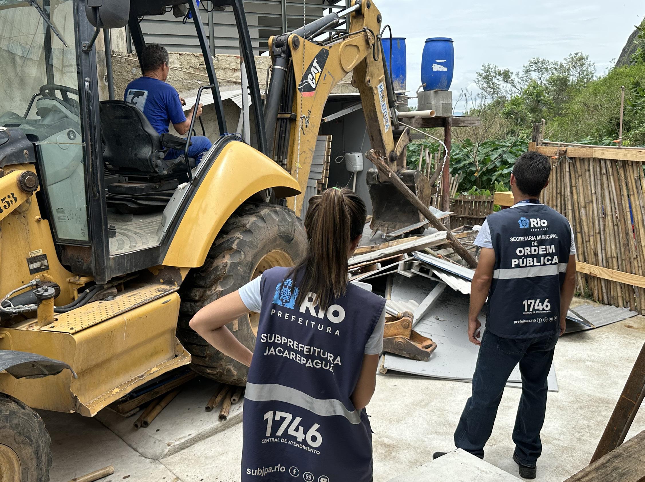 ASecretaria de Ordem Pública e a Subprefeitura de Jacarepaguá realizaram na manhã de ontem (24) uma operação de demolição de construção irregular na Avenida Engenheiro Souza Filho, no Rio das Pedras. No local, de aproximadamente 400 m², funcionava um bar com estrutura de madeira, além de duas tendas cobrindo mesas e cadeiras, tudo em área pública e sem nenhuma autorização da Prefeitura. Num terreno ao lado, o dono do bar se apropriou cercando um espaço de 2 mil m² que servia como estacionamento. Ligações clandestinas de água e energia foram encontradas. Foram apreendidos 15 freezers, 23 mesas de madeira, 95 cadeiras, 10 mesas de plástico e um baú. “Essa é mais uma operação que a Secretaria de Ordem Pública faz pra mostrar que o espaço público precisa ser respeitado. Não vamos tolerar a privatização, a ocupação ilegal de espaços públicos, principalmente porque nesse espaço específico será construída uma praça. Então a gente vai continuar fazendo o trabalho de demolir construções irregulares, sejam em áreas públicas próximas de ruas ou em comunidades. A gente vai continuar trabalhando pela ordem pública na cidade do Rio de Janeiro”, afirma o Secretário de Ordem Pública, Brenno Carnevale.