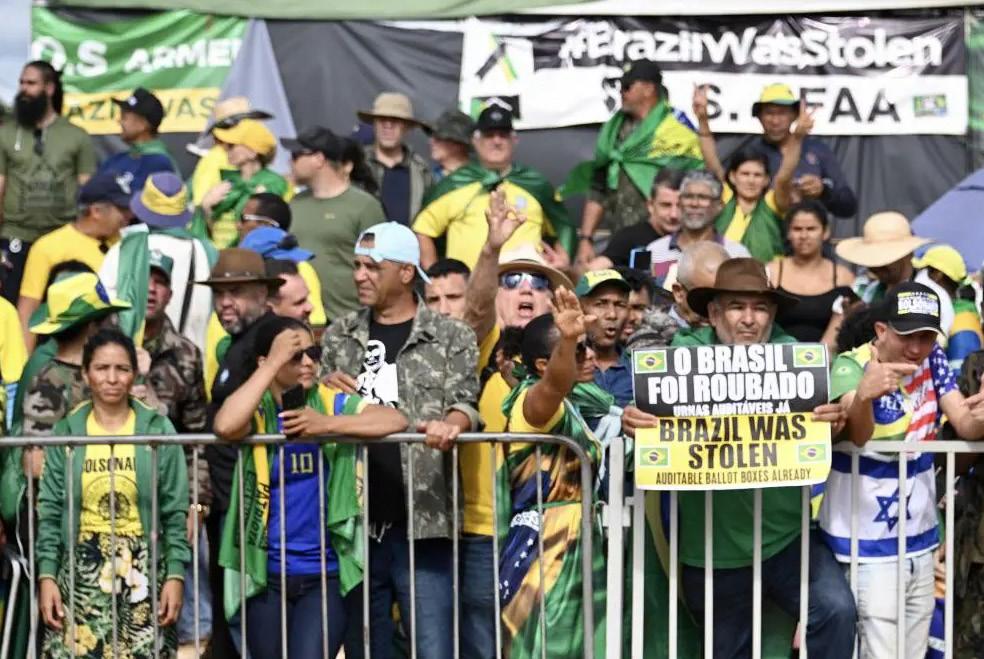 Apoiadores do presidente Jair Bolsonaro no acampamento montado ao redor do QG do Exército, em Brasília, pedem intervenção militar contra a posse de Lula - Foto: Evaristo Sá/AFP