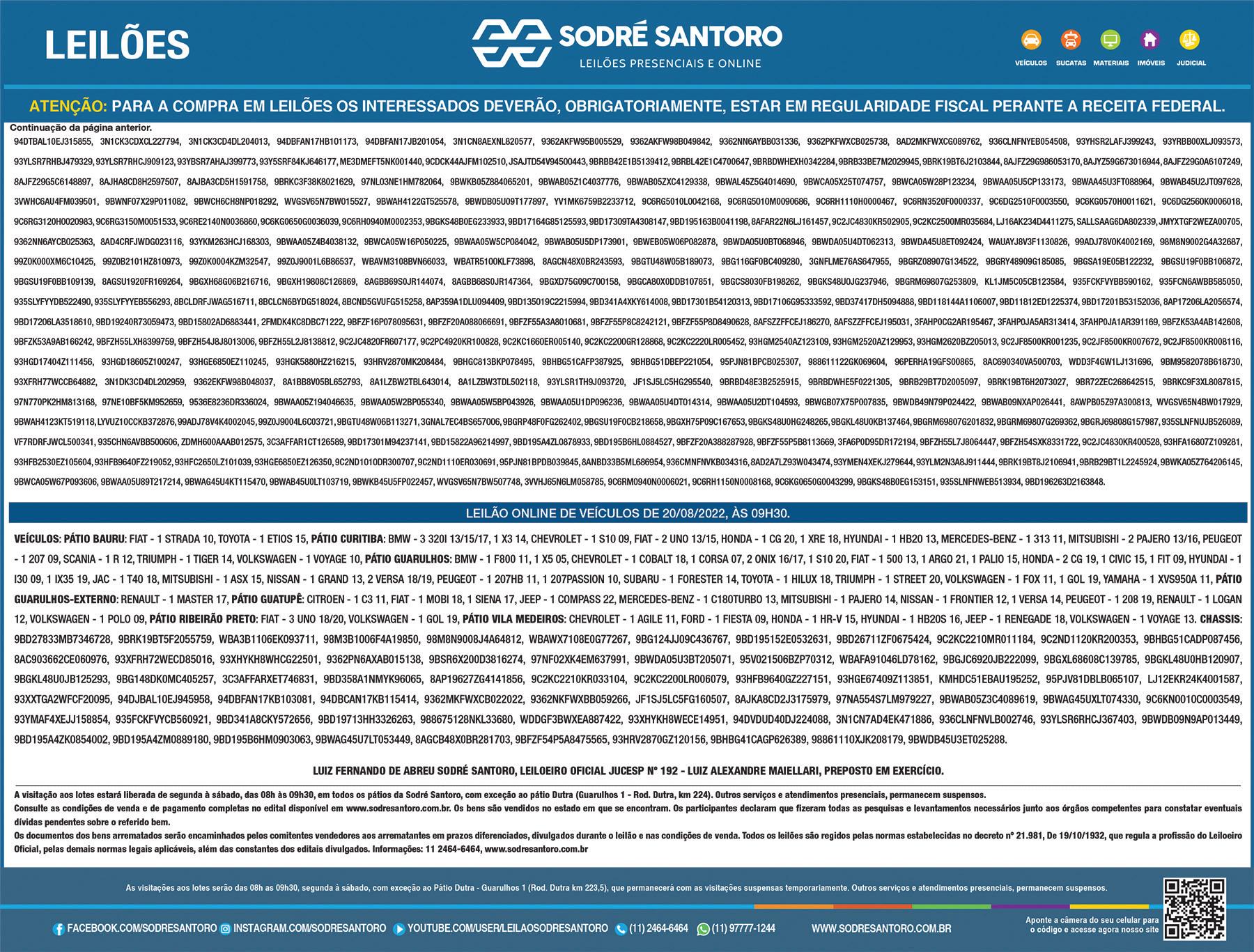 www.jornalprimeirolance.com.br Ano XIII-nº1128 BRASIL: São Paulo, 15 a 21 de Agosto, de 2022 - Pág. 11 -Jornal Primeiro Lance LEILÃO PRESENCIAL E www.leilaoonline.netON-LINE LEILÃO PRESENCIAL Pça dos Omaguás 98 S. Paulo - SP 19 / AGOSTO / 2022 - 6ª Feira - 14:30 HS LEILÃO PRESENCIAL E www.leilaoonline.netON-LINE LEILÃO PRESENCIAL Pça dos Omaguás 98 S. Paulo - SP 16 / AGOSTO / 2022 - 3ª Feira - 11:30 HS LEILÃO PRESENCIAL E www.leilaoonline.netON-LINE LEILÃO PRESENCIAL Pça dos Omaguás 98 S. Paulo - SP 25 / Agosto / 2022 - 5ª Feira - 11:30 HS LEILÃO PRESENCIAL E www.leilaoonline.netON-LINE LEILÃO PRESENCIAL Pça dos Omaguás 98 S. Paulo - SP 26 / AGOSTO / 2022 - 6ª Feira - 11:30 HS LEILÃO PRESENCIAL E www.leilaoonline.netON-LINE LEILÃO PRESENCIAL Pça dos Omaguás 98 S. Paulo - SP 16 / AGOSTO / 2022 - 3ª Feira - 11:30 HS LEILÃO PRESENCIAL E www.leilaoonline.netON-LINE LEILÃO PRESENCIAL Pça dos Omaguás 98 S. Paulo - SP 25 / AGOSTO / 2022 - 5ª Feira - 15:00 HS