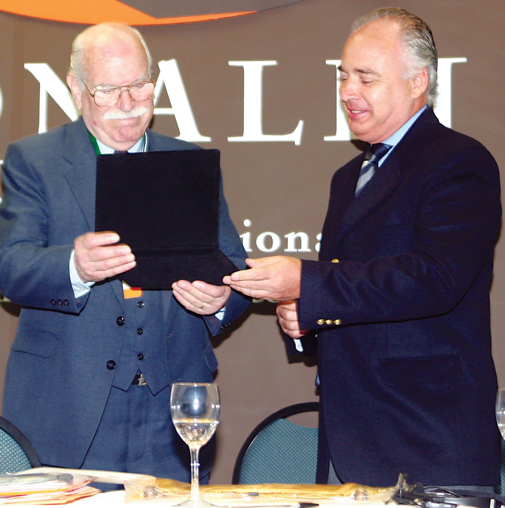 Comemoramos os 49 Anos La Asociación Americana Especificando a oferta devidamente feita à mesa da Dire toria da American Association, pelo Dr. Luiz Fernando de Abreu Sodré Santoro, por ocasião da 51ª reunião realizada na cidade de Buenos Aires (República-Argentina) nos dias 10 e Em 20 de setembro de 2002, o Sindicato dos Leiloeiros do Estado de São Paulo, realizou a organização deste novo encontro de Profissionais, Leiloeiros, Corretores de Imóveis e Balançadores do Brasil em Assembléia Geral com a Diretoria. Visando transmitir todos as informações necessárias que permitem aos profissionais do Brasil, o pleno conhecimento dos objetivos e metas que a Associação Americana teve, desde sua fundação em 1973, tentando alcançar o pleno reconhecimento jurídico em nível americano, em todos os países do continente o exercício das profissões que agrupa. Acreditamos, será um encontro de vital importância para estimular a entrada no grêmio do maior número de Leiloeiros aos registos sociais da instituição, o que sem dúvida reforçará a sua imagem e permitirá no futuro um maior argumento de persuasão, nos gestores, que ao nível dos governos da América deve levar adiante, buscando a elevação intelectual, profissional e sindical de todos os profissionais do continente. “ Não duvidamos que ao final do encontro, todos sem exceção concordarão com os aspectos positivos desses encontros, e que como diz a canção do poeta Antonio Machado, "o caminho se faz caminhando" de que teremos sem dúvidas.” Exaltou Dom Oliva. Neste momento que esta pequena carta enviada por Fax, ainda borrada pela má impressão do meu aparelho, já usado por milhares de vezes com noticias vindas do oriente, do ocidente, vindas de lugares jamis imaginaveis, vindas da Associação Americana, pelas mãos de seu PRESIDENTE, que mesmo cansado, não se deixava abater com tempo. Me lembrei dessa imagem acima, do maior Leiloeiro Oficial Luiz Fernando de Abreu Sodré Santoro, homenageando, aquele que foi o maior representante dos Leiloeiros de todos os tempos Dom Alfredo Martinez Oliva, um Uruguaio que não media esforços, não media distâncias entre os povos para levar, nem que fosse, um pouquinho de seu conhecimento, de sua longa experiência aos colegas de outros paízes, outros continentes, desbravando as Leis e outras linguas, para levar nas alturas dos conhencimentos profissionais, aperfeiçoando e estendendo as mãos aos grandes e colorosos abraços nos lindos encontros por ele realizados. Eu vivi para ver e registrar essa emoção que passo agora aos queridos LEITORES. Passos Camargos