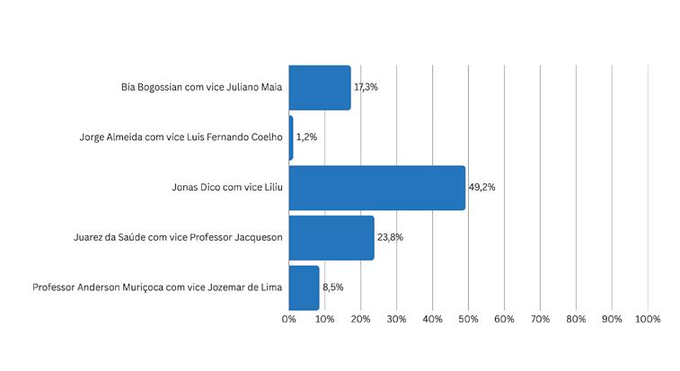 Além da folgada liderança, quando perguntados sobre quem vai vencer as eleições, 53,7% dos pesquisados apontam Jonas Dico como vencedor, enquanto Juarez da Saúde é indicado por 14% dos entrevistados. Bia é apontada por 8,7%, Muriçoca, por 7,0% e Jorge de Almeida, por 1%.