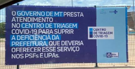 Também neste ano, o governador do Estado de Mato Grosso instalou um outdoor em frente à Arena Pantanal, local que funciona como centro de triagem para atendimento e realização de teste de pacientes com suspeita de covid-19, questionando o governo municipal. “O Governo de MT presta atendimento no Centro de Triagem Covid-19 para suprir a deficiência da Prefeitura, que deveria oferecer esse serviço nos PSFs e UPAs, dizia o banner com a logo oficial do