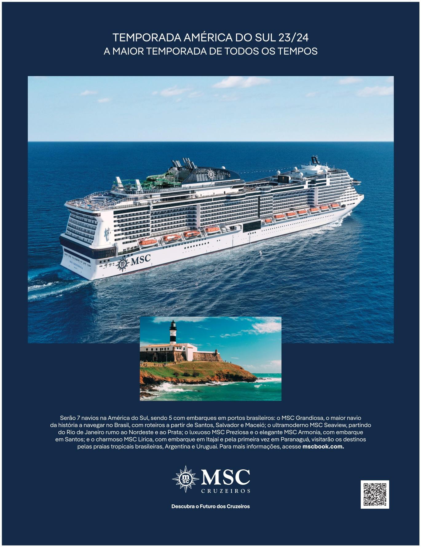 Explore a diversidade natural e cultural do litoral brasileiro com cruzeiros da MSC e Costa. Com opções all inclusive, vivencie todas as emoções de um cruzeiro enquanto desfruta de paisagens deslumbrantes.