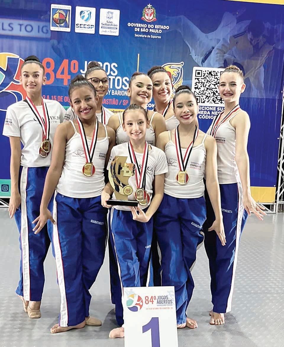 Ao todo, 15 mil atletas de diferentes modali dades e de 200 cidades participaram do evento. Na GR, as atletas de Guaratinguetá disputa ram a categoria até 14 anos, nas provas mão livres, maças, fita, du pla e conjunto. Assim: - Beatriz Vieira -
