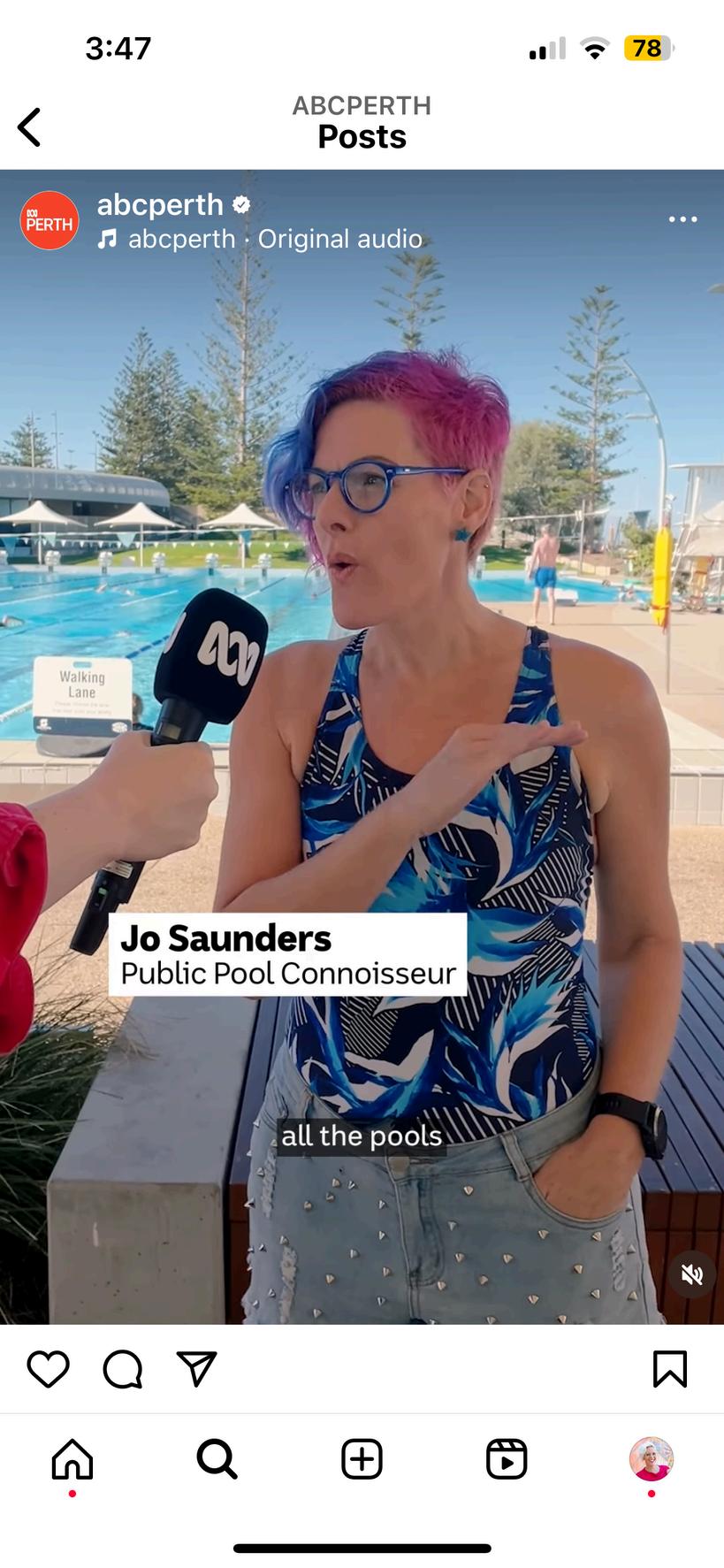 JoSaundersisthecreatorof#PerthPoolQuestand#SplashNetworking.Shedidin’tgrowup swimming,butlovesaquest. Whennotinapoolinsheisexploringthroughtryingnewactivities, walking,running,cycling,housesitting,searchingforthebestchailatte andtryingonoutrageous itemsinopshopssupportingthe circulareconomywithherhusbandJeremy