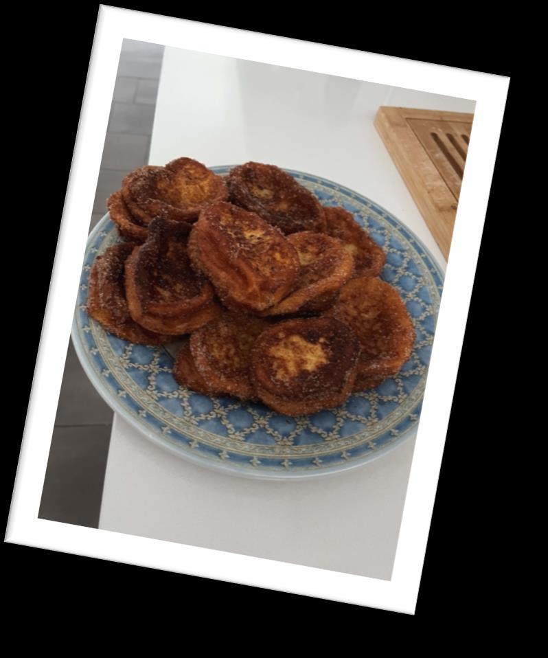 Hicimosunastorrijascaserasconcanelaynossalieronmuy bien.Estuvieronmuyricas.Usamospanparisinoounabarra depanduro,leche,canela,vainilla,huevos,azúcarynuez moscada.Paraterminar,metimoslastorrijasenunasartén conaceiteylasfreímos.Antesdeservirlas,lesechamos azúcardecanelaportodaspartesyestabanlistasparaser consumidas.
