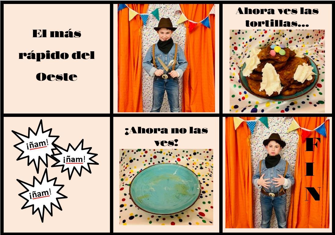 Hola, soy el más rápido del oeste. He hecho tortitas de plátano y eran muy buenas con nata. He puesto el doble de canela, porque me gusta mucho la canela. Espero que os guste el cómic.