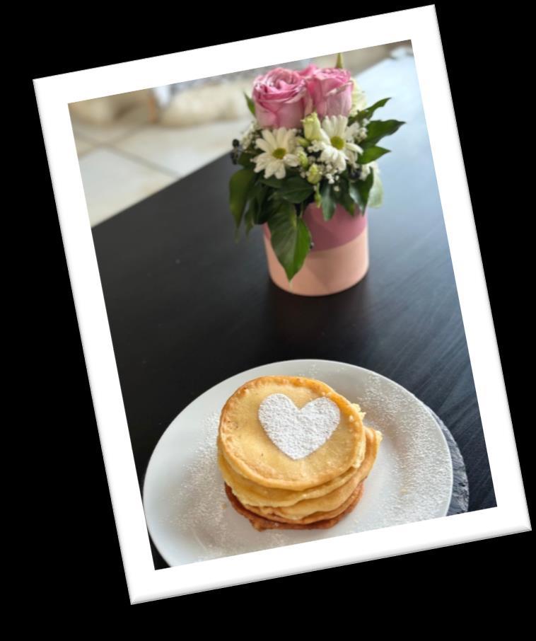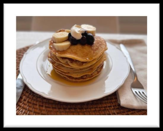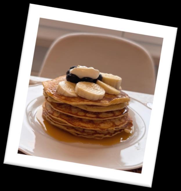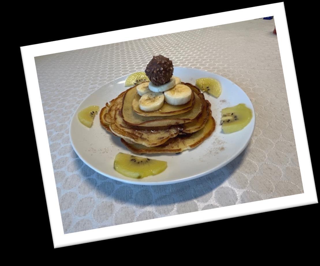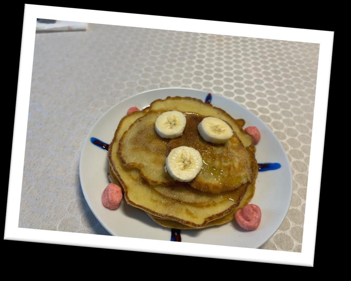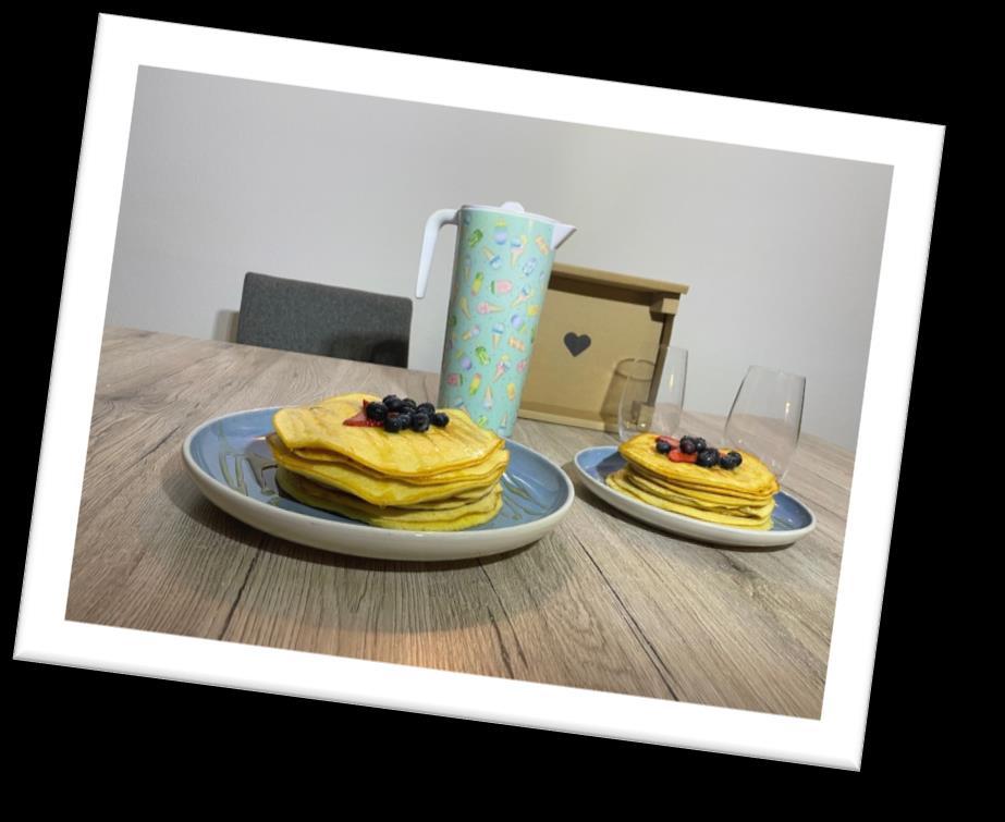 Lo que más me sorprendió al cocinar las tortitas, es que tardamos muchísimo. Al final nos quedó riquísimo. También pusimos arándanos, fresas y mucha miel.