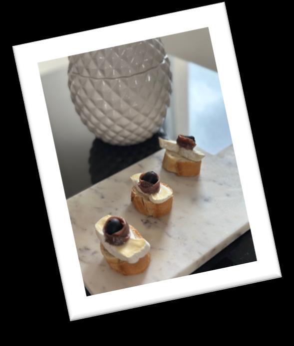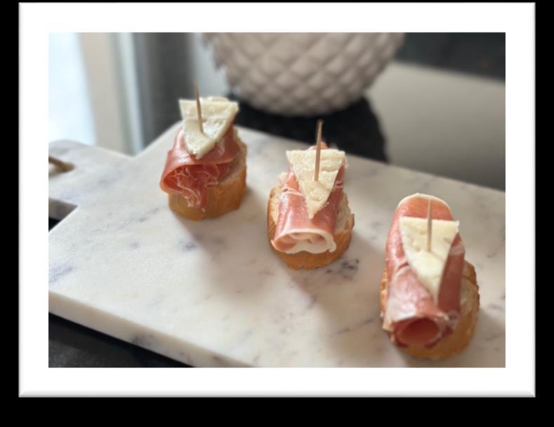 2. Jamónibéricoyquesomanchego. Quesoblando,aceitunayanchoa. Atún con huevo, mayonesa y