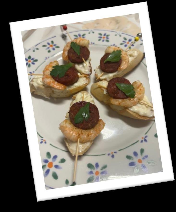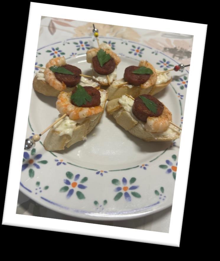 Tuve la idea de preparar una ensaladilla propia además de los montaditos. Me gustan mucho las ensaladillas. Hice los montaditos junto a mis padres. Me hizo mucha ilusión. Sabían muy bien. Mmmmmm….