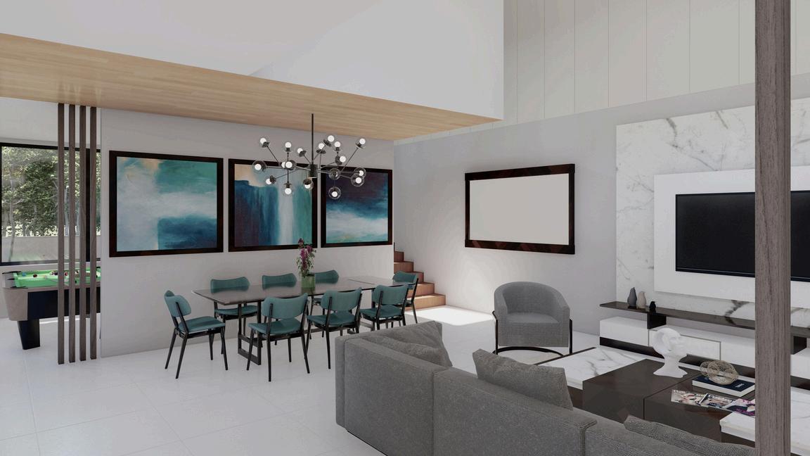 Este diseño es una propuesta de diseño para una remodelación y propuesta de sala comedor, un bar y un pasillo que uniría las zonas social e intima de manera interna