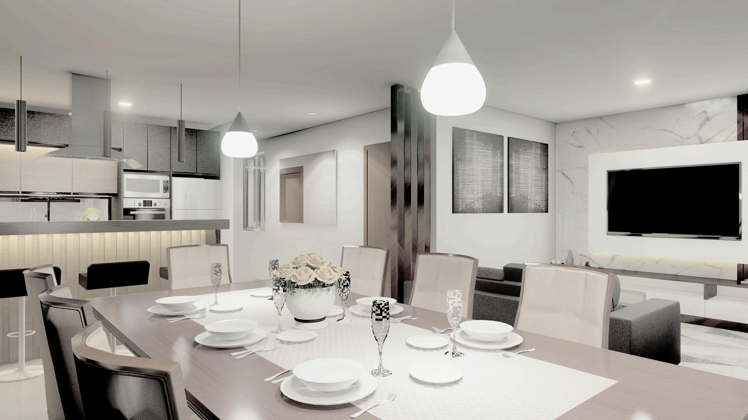 Este diseño es una propuesta de diseño para una sala-comedorcocina de un departamento de 160m²