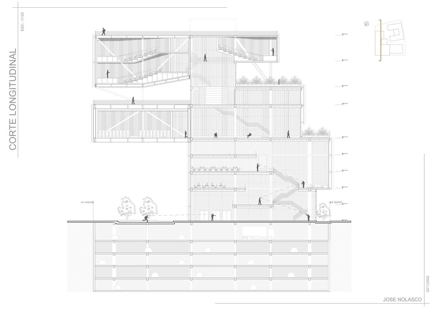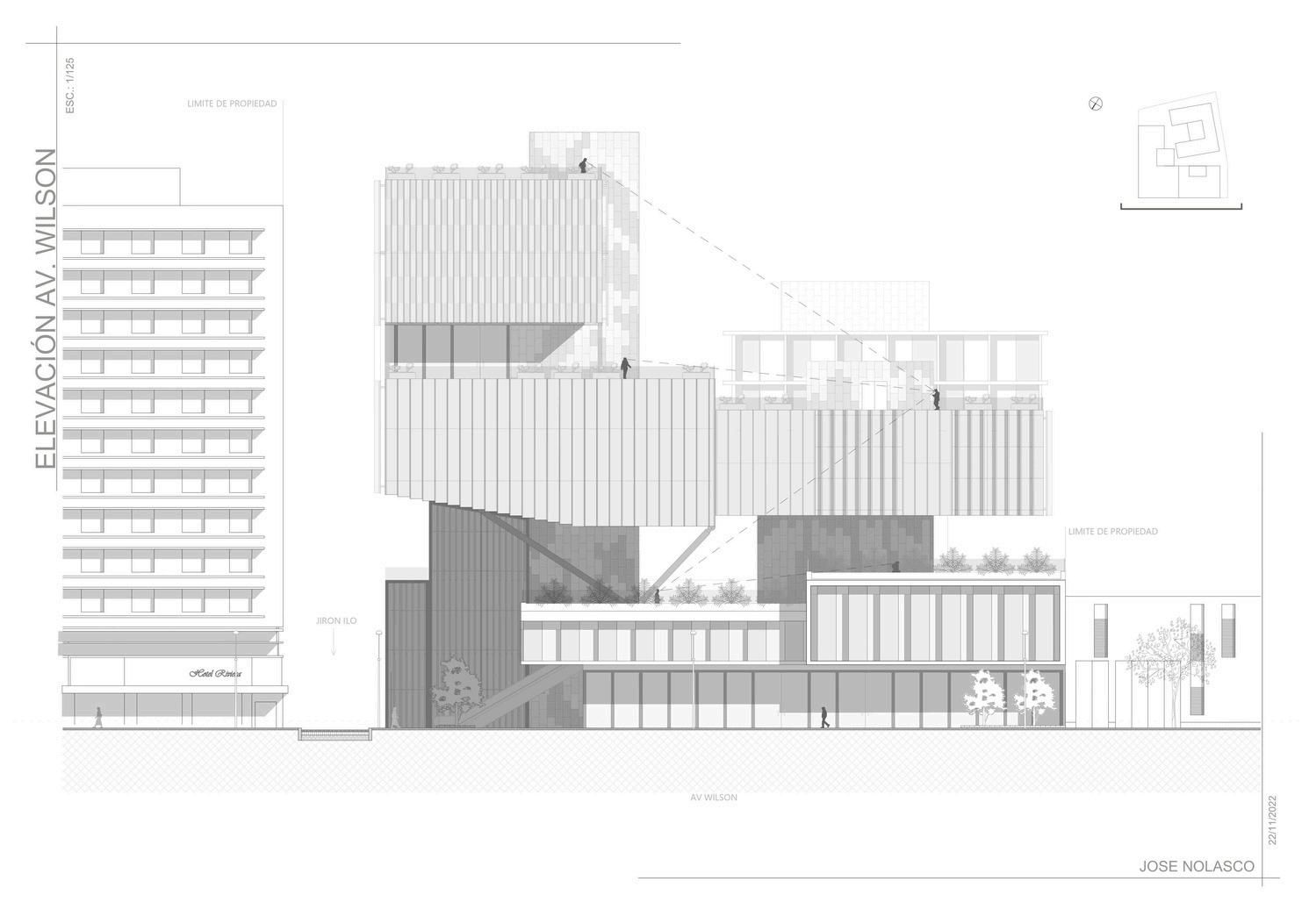 Este Edificio Hibrido fue diseñado para cubrir las necesidades de una población especifica ubicada en el centro de lima, el terreno se encuentra en la Av. Garcilaso de la vega o también llamada Av. Wilson, dentro del edificio se encuentran tipologías como vivienda, oficinas, restaurante, museo, centro de convenciones y teatro.