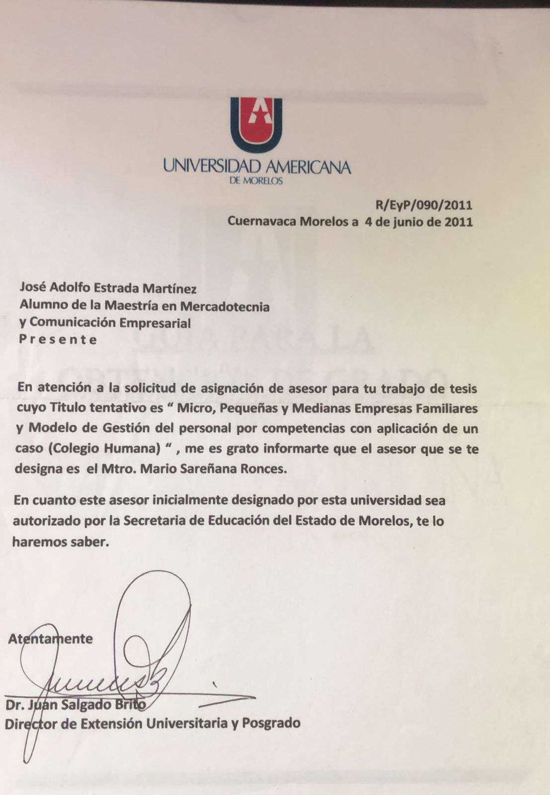 Me permito hacer de su conocimiento que JOSEADOLFO ESTRADA MARTINEZ, trabajó en la empresa Casa Alonso de Cuernavaca durante un periodo de del 21 de Abirl de 2021 al 4 de Enero de 2022 desempeñando principalmente el puesto de Jefe de Recursos Humanos Seguros estamos que JOSEADOLFO sabrá cumplir con las tareas encomendadas y es por eso el motivo de mi recomendación.