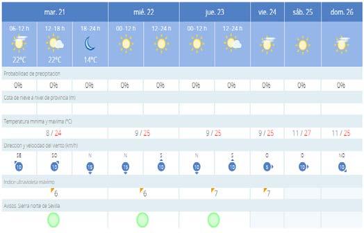 Despedimos el invierno y damos la bienvenida hoy a la primavera con un tiempo que bien se puede asemejar al verano, sobre todo durante el día. Y es que a la finalización de esta semana estaremos rondando los 27 grados de máxima, algo que, aún siendo primavera resulta algo inusual. Hasta ese momento viviremos un ascenso de temperaturas que acabarán en los 25 grados del viernes. Las mínimas, por su parte, llevarán su particular ascenso desde los ocho grados del martes a los 11 del domingo. Lo más preocupante sigue siendo la falta de agua, aunque aún no es tarde para que esta nos haga una visita en esta loca primavera que hoy comienza.