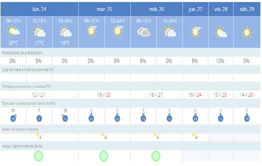 Octubre encara su recta final y lo hace habíendo pasado ya el efec to de Beatrice. Una borrasca que, sin embargo, no ha dejado gran des cantidades de agua. Sea lo que sea, obviamente, se agradece. Y esperemos que lleguen muchas más, aunque, de momento, lo que vamos a tener esta semana es es tabilidad. Con tiempo verdade ramente otoñal vamos a disfrutar de nubes y claros, y también de brumas que nos acompañarán prácticamente toda la semana. No parece ser que ninguna de esas nubes traiga agua, aunque todo es posible en este tiempo. Lo más significativo es un aumento leve de las máximas, y el movimien to inverso de las mínimas que se irán a catorce grados en el fin de semana.