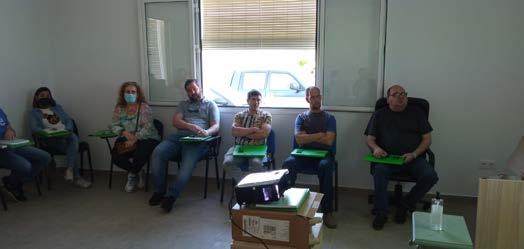 blos de la comarca, sin que desplazarse desde puntos más alejados de esta aula de formación, como pueden ser, por ejemplo, El Real de la Jara o Las Navas de la Concepción, supusiera una dificultad añadida. Para el tercer curso, sin embargo, se quiso que la primera sesión sí que fuera presencial, pues se quiso mostrar al alumnado cómo funciona la Planta de Transferencia de esta Mancomunidad. Así pues, la primera de estas sesiones del curso sirvió como toma de contacto y en ella estuvo presente Pedro Bueno, Técnico de Medio Ambiente de esta Mancomunidad Sierra Morena y responsable de esta acción formativa. Fue el propio Pedro quien instruyó a los presentes en lo que iba a dar de sí el curso y quien entregó el mate-