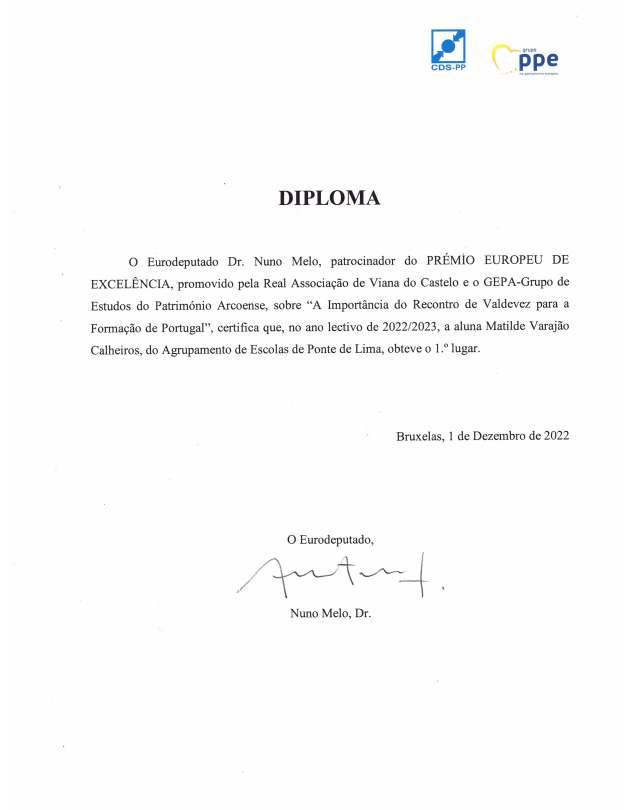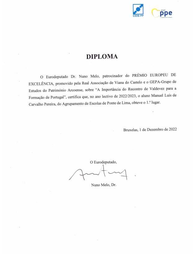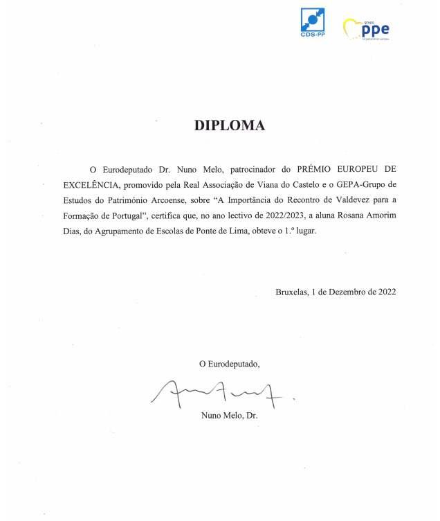 Receberam como prémio uma deslocação a Bruxelas e ao Parlamento Europeu, atribuído pelo Eurodeputado Nuno Melo, que inclui deslocação, alojamento e refeições. Prémio extensivo ao professor responsávelpelaintroduçãodoconcursonoestabelecimentodeensino,assimcomoaofertadeprodutos daMinhoFumeiro.4.ºanodaEb1deFreixo,AgrupamentodeEscolasdeFreixo.Recebeuumchequeno valorde100,00€eaofertadeprodutosdaMinhoFumeiro.