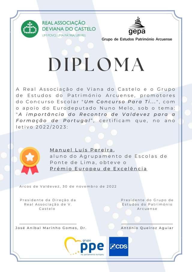 FrequentamaEBPontedeLimadoAgrupamentodeEscolasAntónioFeijó.Oprémioéde300,00€,pelo quereceberamumchequede100,00€cadaumeaofertadeprodutosdaMinhoFumeiro.