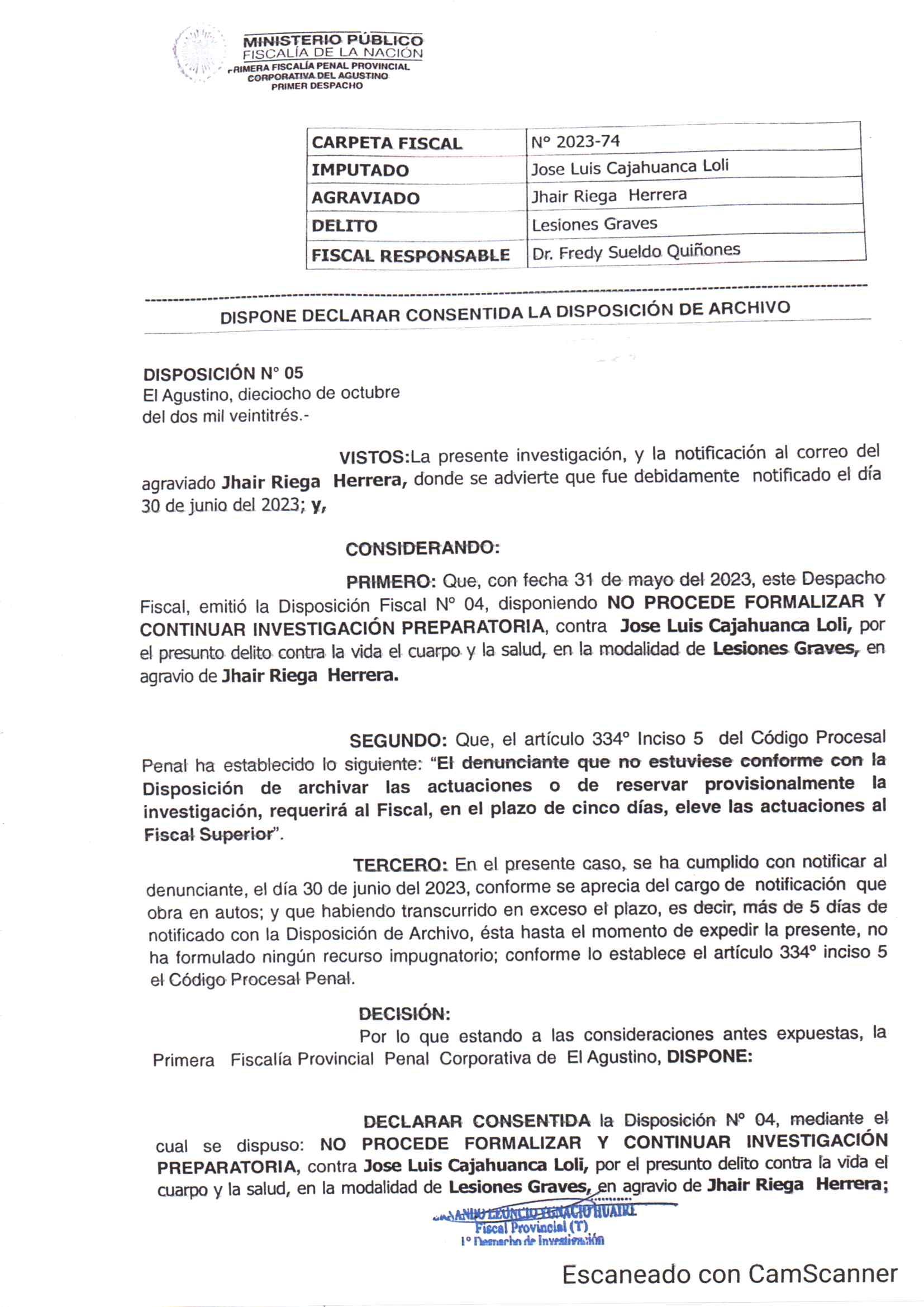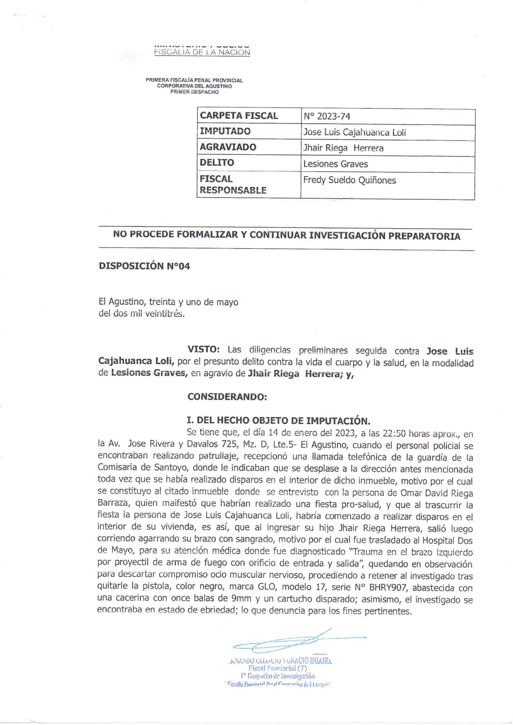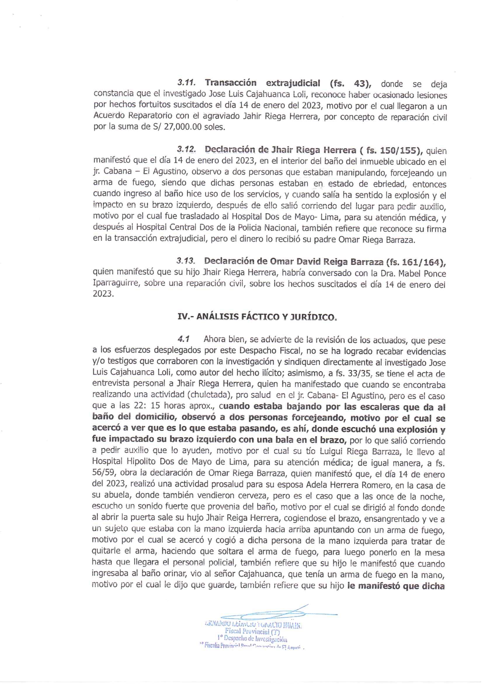 Ante notas periodísticas publicada La República y El Comercio, la fiscalía me dió la razón al archivar el caso y no encontrar medios probatorios en mi contra. Ante lo expuesto, dicha nota debe retirarse o emitir una publicación de rectificación que se adjunte el documento de la Fiscalía Provincial Penal Coporativa de El Agustino en la nota publicada por su medio periodístico ya que me perjudica de forma laboral, profesional y emocional. Asimismo indico que ante la fiscalía se dispuso su inmediato archivamiento, así como la anulación de la denuncia ya que según lo indica el numeral 4.11 del caso "...Se advierte que no existen suficientes elementos de convicción que por ende justifiquen el procesamiento del denunciado. Por lo tanto no será posible proceder a una formalización de investigación preparatoria, siendo ello así, solo quedaría en presunción por no contar con ningún medio probatorio, que de fe de la existencia del hecho materia de investigación..."