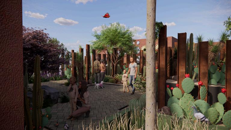 La combinación de texturas y tonalidades se plantea para que el espacio resulte atractivo tanto para quienes recorren el interior del parque como para quienes lo observan desde el exterior, convirtiéndolo en un punto de encuentro y un referente visual para los habitantes de la zona.