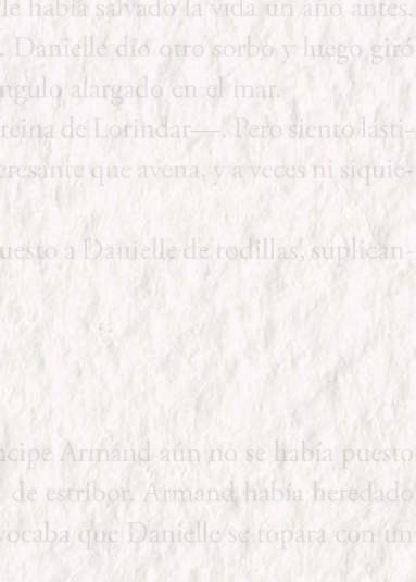 La princesa Danielle Whiteshore de Lorindar observaba las olas aferrada a la barandilla de proa. Si el viento se guía soplando así, podría convertirse en la primera princesa de la historia en vomitar en las aguas de los ondinos para darles la bienvenida tras su migración de invierno. El tiempo había estado apacible la mayor parte de la mañana, pero el cielo había cambiado desde el mediodía. En ese momento, era como si el mar encontrase una satisfacción perversa en atormentarla.