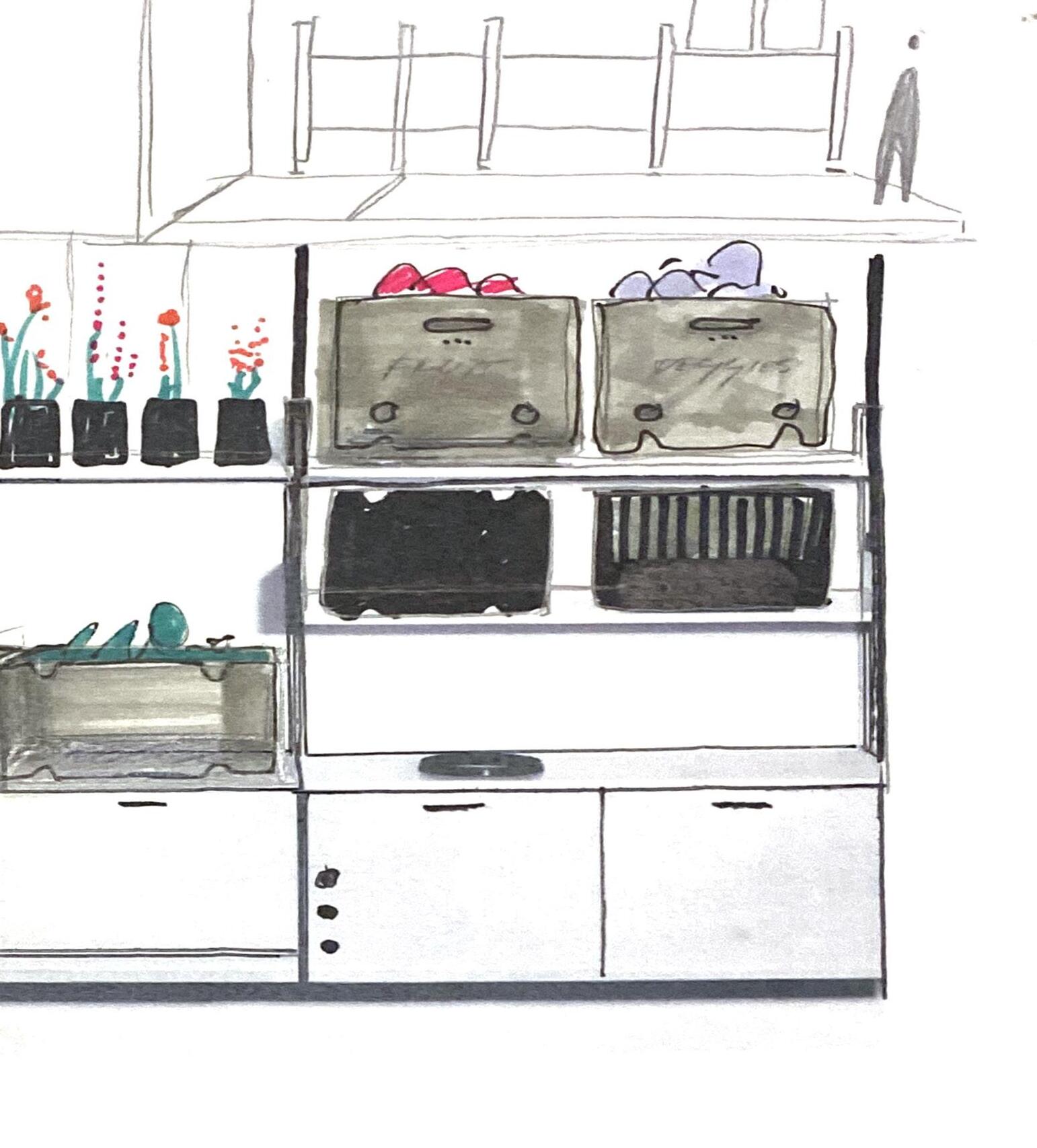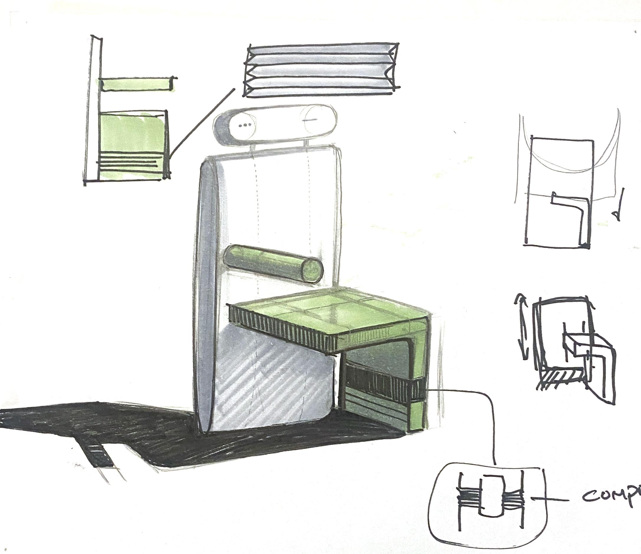 I crafted this model from the plan view sketch, I used balsa wood to construct the frame, added chip board and paper to cover the volume and ultimately painted the panels to add graphical separation. Hot glue was used assemble and black tape allowed me to plan The panel separation and further Investigate the graphical functionality.